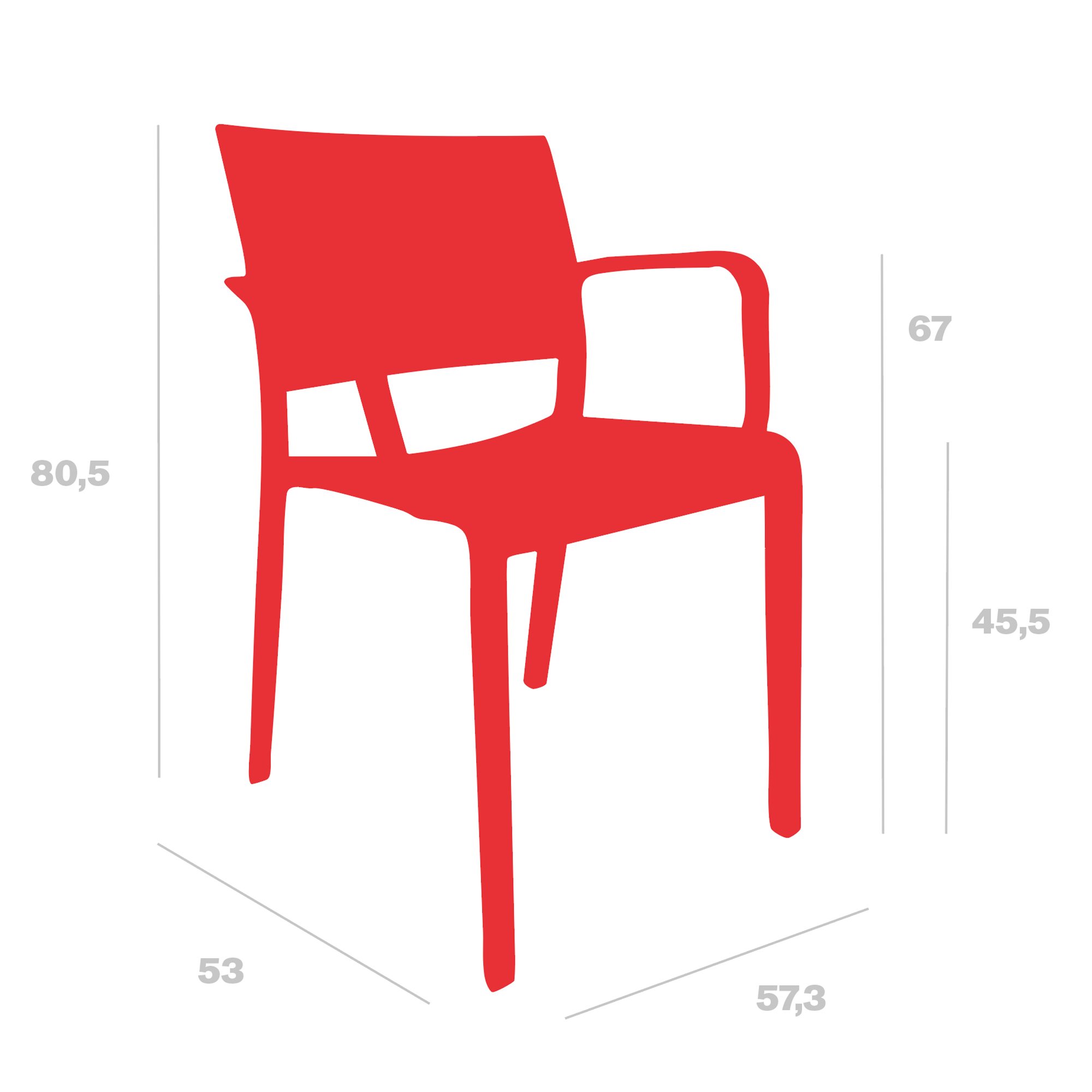 Silla para uso interior y exterior. Inyectada con fibra de vidrio y PP. Apilable. Protección UV. Peso neto silla 4,14 kg. Opcional: Pinza enlace de sillas para convenciones y eventos inyectada en policarbonato translúcido.